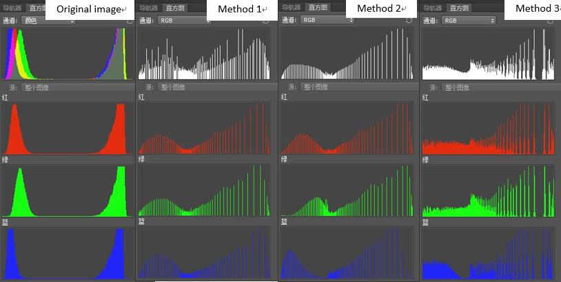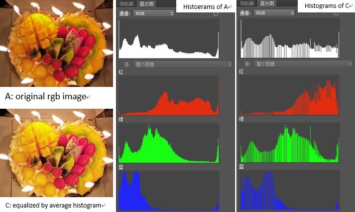What we want is a better distributed RGB histogram but not all histograms including color channels. So we can take the three channels as a whole when calculate the histogram.
