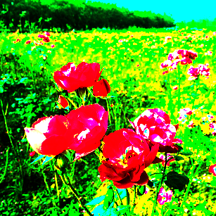 I set value 2 and 4 respectively for this example and got red flowers in yellow and green background. The scale value means you want to preserve(shrink or enlarge) the source image in what extent. A big value means the source image’s color counts a lot and it will combine with the target color. The smaller the value, the more similar the color is to the pure color. So its much more convenient and controllable to input a pure color target image and tune the scale value! I call it PureColorGuidedStyle method.