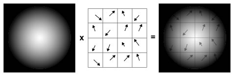 Each pixel/cell has a direction. Every sixteen directions are collected by an orientation histogram. Considering the pixels closer to keypoint (in the center) affect more than further pixels, we use a “gaussian weighting function” to assign different value. In the following figure, the farther away, the lesser the magnitude (darker).