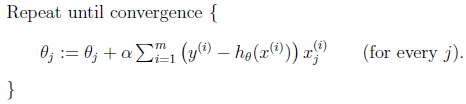 $$\theta_j:=\theta_j-\alpha\frac{ \partial }{ \partial \theta_j }J(\theta)$$