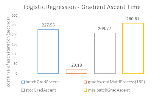 使用Python的多进程对逻辑回归的批量梯度上升法中计算梯度的过程进行并行化,达到加速运算的目的。