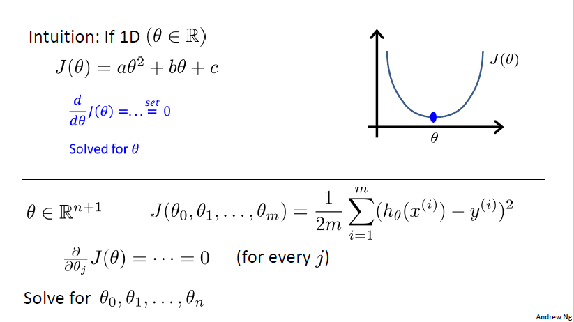 Normal equation: Method to solve for $\theta$ analytically which minimize $J$ by